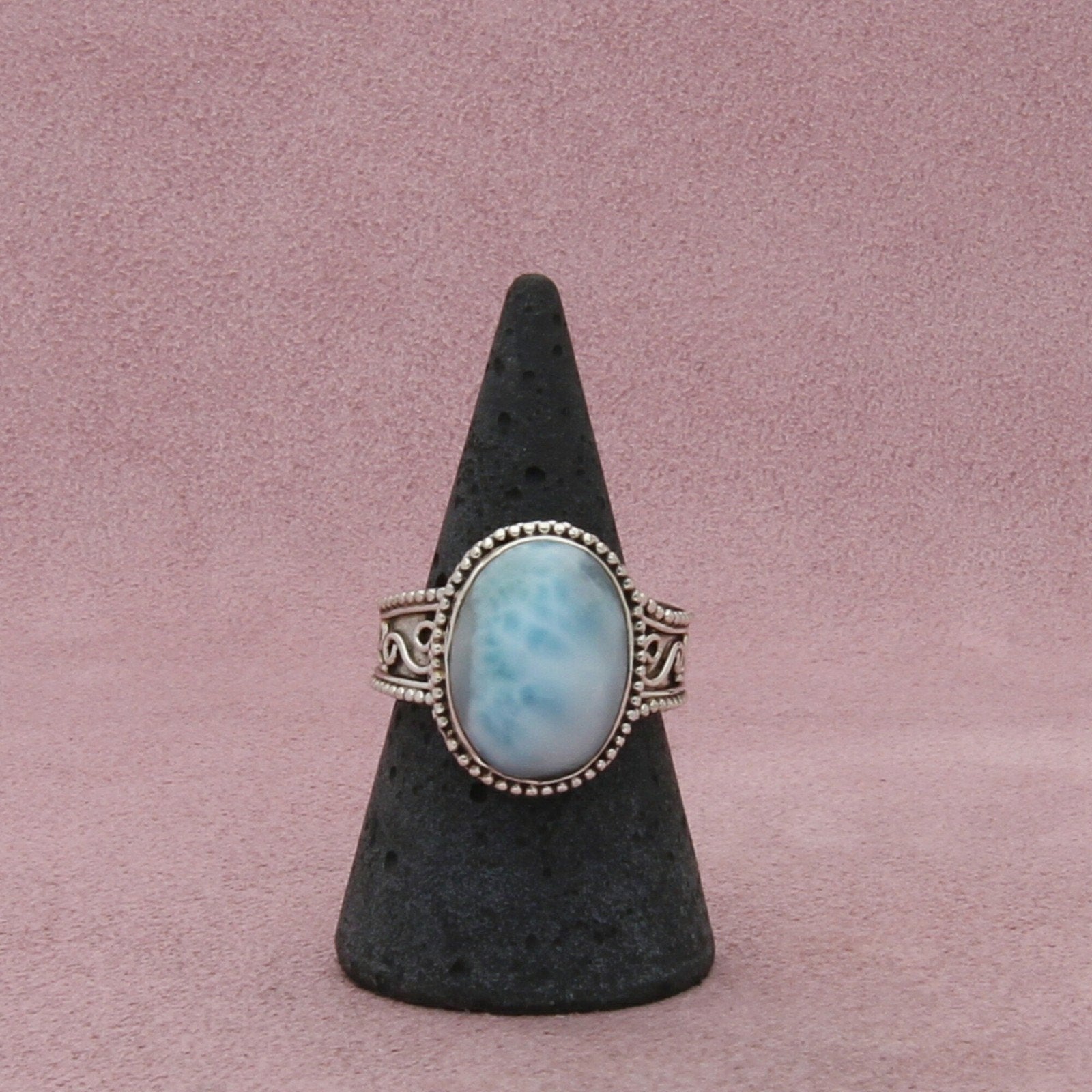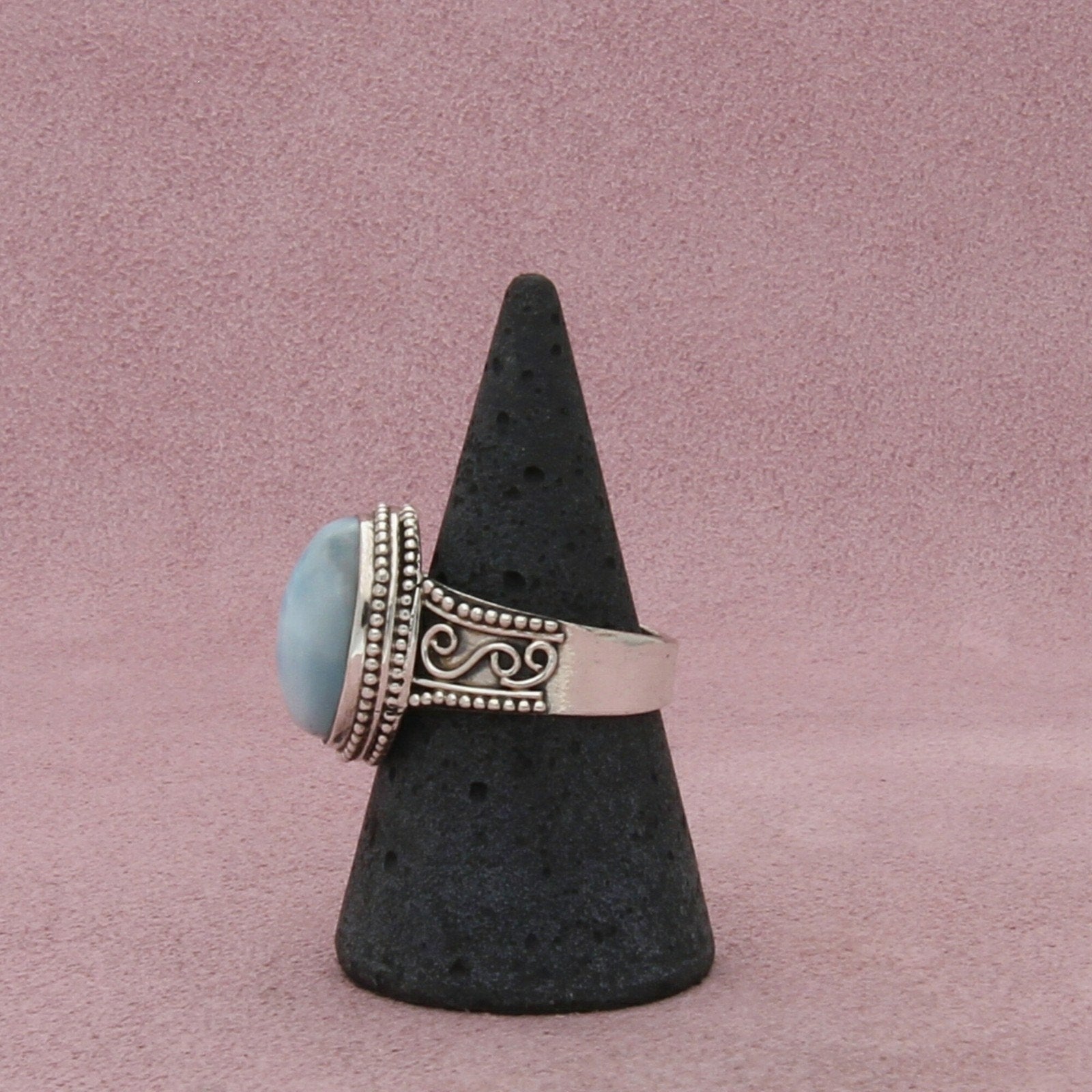 sterling silver beaded scroll blue larimar cabochon ring size 8.75